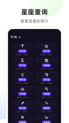 准星专家是一款功能丰富的星座运势应用,为用户提供全方位的占卜体验。通过选择不同日期,用户可以获取每日运势、星座速配等专业内容。软件界面简洁易用,支持一键搜索快速查询,满足用户对星座知识的各种需求。无论是想了解爱情运势、事业走向,还是寻找幸运数字和颜色,准星专家都能提供精准建议。此外,软件还包含星座配对解析、年度运势预测等特色功能,帮助用户更好地规划生活。快来下载体验,探索属于你的星座奥秘吧!