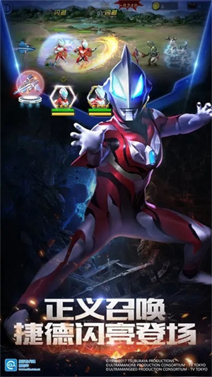 策略性的战斗玩法:战斗采用横版策略模式,玩家需要根据怪兽的属性和攻击方式,合理搭配奥特曼阵容,运用不同的战术组合来克敌制胜。战斗中还加入了QTE系统,让操作更具技巧性。