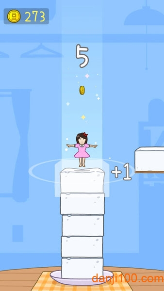 点击屏幕控制女孩跳跃时机,精准落在豆腐块上是成功的关键。游戏采用物理模拟系统,每次落点的角度和力度都会影响后续动作。