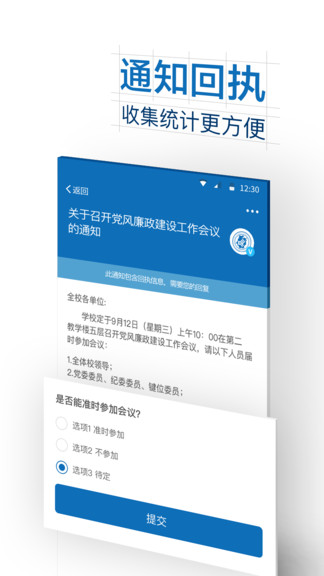 收集统计更方便,支持多种格式通知发布,实时查看阅读情况,自动生成统计报表,大幅提升工作效率
