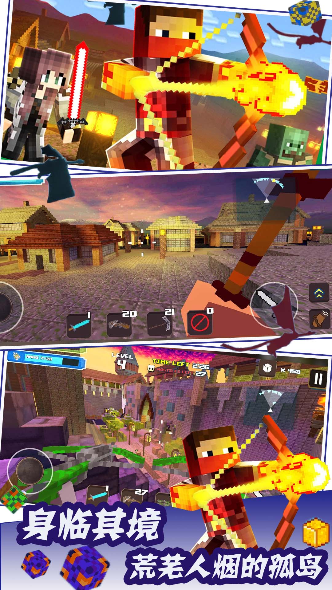 在这款充满刺激与挑战的像素方块射击游戏中,玩家将置身于一座危机四伏的荒岛。你需要集结队友,搜寻武器和道具,与源源不断袭来的怪物展开激烈战斗。同时还要收集物资建造基地,在恶劣的环境中努力生存下去。游戏采用独特的沙盒玩法,融合了射击、建造、生存等多种元素,让你体验一场惊心动魄的荒岛求生之旅。丰富的游戏内容和多变的挑战模式,将带给你前所未有的游戏体验。