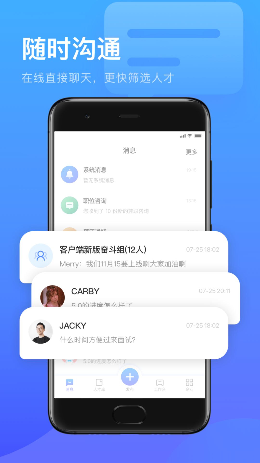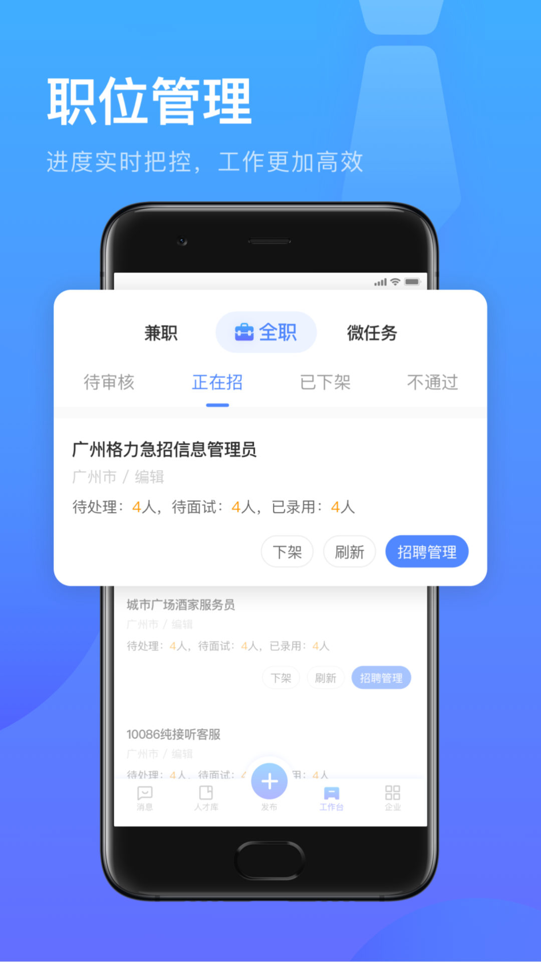 √电脑+手机双端同步,随时随地管理你的招聘信息,数据实时更新