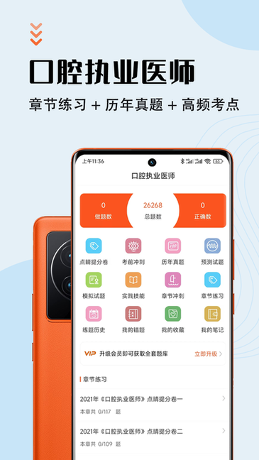 【章节练习】按章节系统练习,全面覆盖口腔执业医师教材大纲,帮助考生逐步夯实基础;