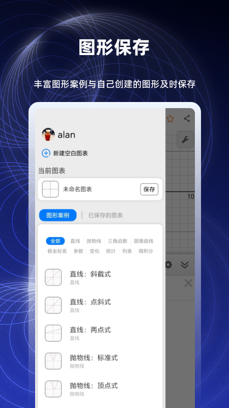 在本站下载数学函数图形计算器APP,安装好后打开应用。首次启动时会显示简洁的引导教程,帮助用户快速了解各项功能。进入APP主界面后,可以看到代数函数、三角函数、指数函数、对数函数等常见数学函数类型分类明确,便于快速选择。根据需要选择计算类型后,在输入框中输入具体的函数表达式,系统会实时显示输入内容的数学格式预览。输入完函数表达式后,点击"绘制"按钮,应用将自动生成并展示该函数的图像,同时支持缩放和拖动查看细节。在图像面板中,用户可以清晰地看到函数的图形表示,包括曲线的形状、趋势等关键特征,还能通过坐标轴设置调整显示范围。APP提供完善的历史记录功能,方便用户查看之前输入的函数表达式和绘制的图像,支持一键重新计算或导出结果。