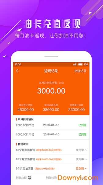 返现记录:详细记录每笔充值返现情况,收支明细一目了然,方便用户随时查询核对;