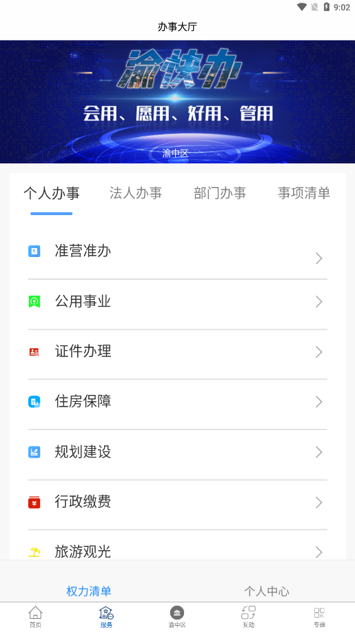 渝中政府APP是重庆市渝中区人民政府精心打造的移动政务服务平台,作为政府面向社会的数字化窗口,它不仅实现了政务信息的即时公开,更构建了政府与市民之间的高效沟通渠道。该应用通过移动互联网技术,将传统的线下政务服务全面升级为线上办理,极大地提升了行政效率和服务质量。应用内设有首页、服务、渝中区、互动、专题等多个功能模块,每个模块都经过精心设计,确保用户能够快速找到所需服务。同时,该应用严格遵循国家政务服务平台建设标准,确保数据安全和隐私保护,让市民可以放心使用。