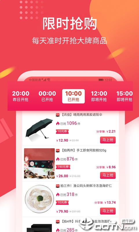 限时抢购:精选大额优惠券商品、时时播报、好货绝不放过,用户可以通过提醒功能第一时间参与抢购。