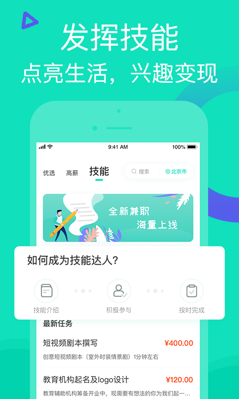 【技能专区】为有专业技能的用户量身打造,在这里你可以充分发挥所长,用知识变现,获得更高报酬。