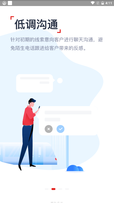低调沟通:创新采用社交化沟通方式,支持通过聊天窗口与初期线索客户建立联系,相比传统电话营销更能降低客户戒备心理,显著提升沟通响应率。