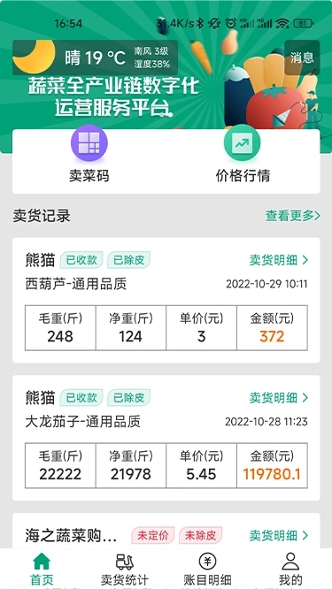 作为一款专业的农业管理软件,菜多产app集成了多项创新功能,包括先进的人脸识别技术、智能账目自动同步系统、精准的大棚环境监测等核心功能。这些功能相互配合,为种植户提供全方位的数字化解决方案,帮助农户提升管理效率,降低经营成本。