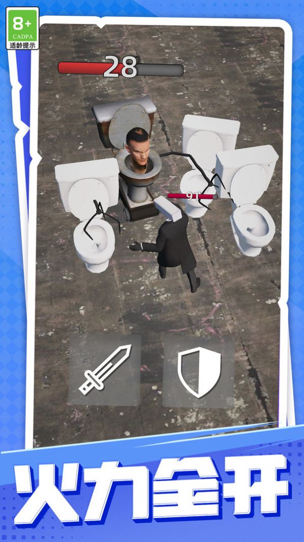 勇士大战马桶人是一款充满创意与挑战的冒险战斗游戏。在这个奇妙的世界里,玩家将遭遇形态各异、数量庞大的马桶人军团。这些顽强的敌人会不断涌现,对玩家发起猛烈进攻。游戏不仅考验玩家的反应速度,更注重策略规划——玩家必须在限定时间内彻底清除每个场景中的所有马桶人,包括那些善于隐藏的狡猾敌人。独特的监控系统和丰富的关卡设计让每次战斗都充满变数,而融入的环保知识又为游戏增添了教育意义。