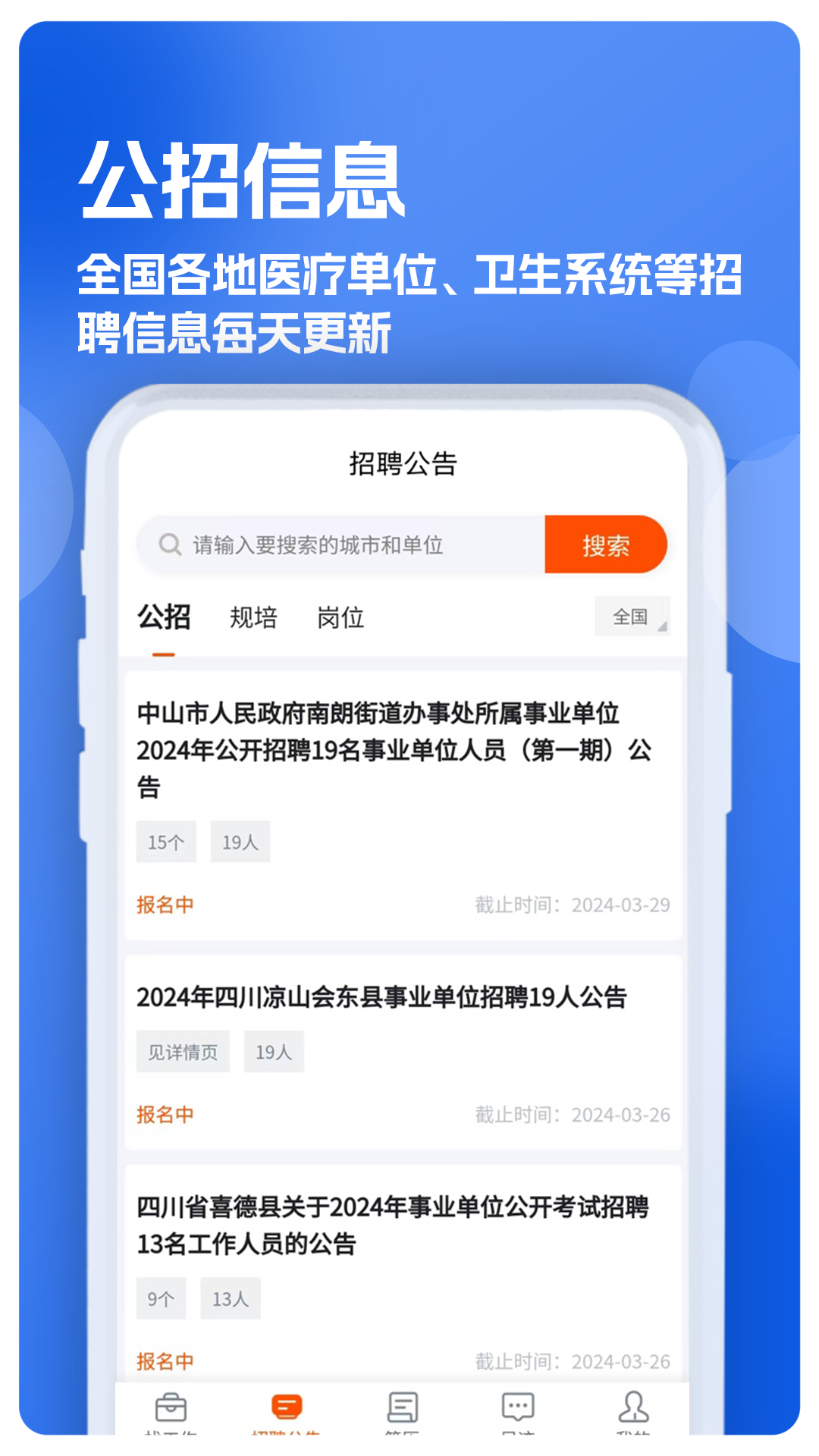 护士求职网是一款专为护理人员打造的智能求职平台,致力于为全国护士提供高效便捷的就业服务。通过这款APP,用户可以实时获取最新医院招聘资讯,一键投递个人简历,与用人单位直接沟通,实现精准就业匹配。平台汇聚了公立医院、私立医疗机构等各类护理岗位,涵盖护士、护师、主管护师等不同职级需求,同时提供职业发展指导和行业资讯,帮助护理从业者规划职业道路。无论是应届毕业生还是资深护理专家,都能在这里找到合适的发展机会。