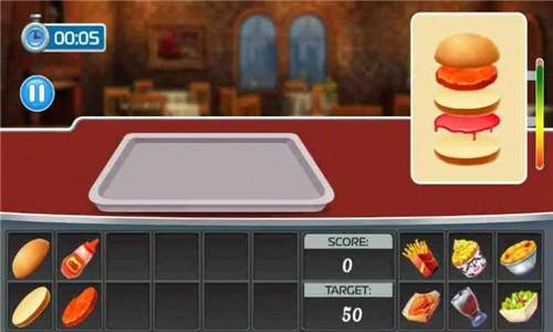 丰富多样的食材选择让玩家可以尽情发挥创意,从经典美式汉堡到创意融合风味都能轻松实现。游戏通过逐步提升的制作难度,考验玩家的时间管理和搭配技巧,让每一次汉堡制作都充满挑战性。高度自由的玩法设计不仅允许玩家按照个人喜好定制汉堡,还能解锁隐藏配方和特殊装饰,为游戏增添了更多探索乐趣和重玩价值。