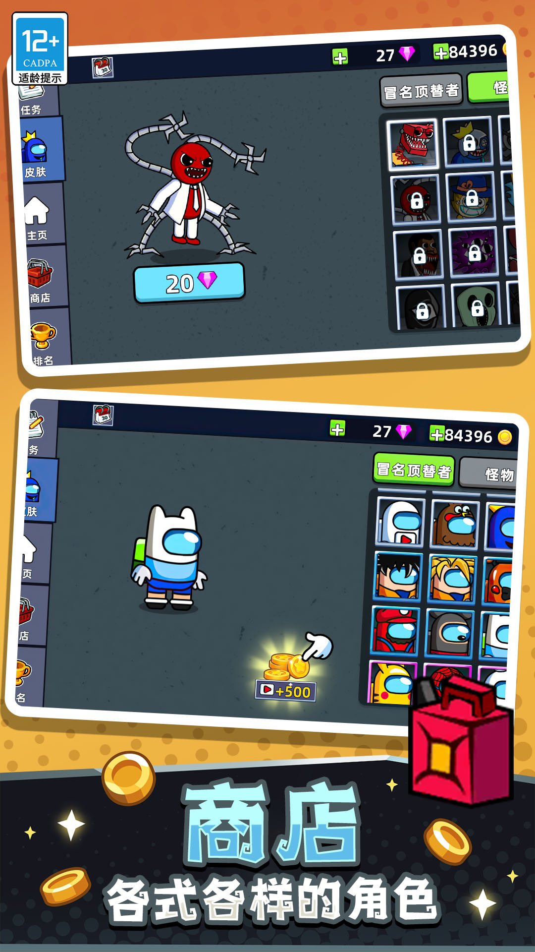 《冒名顶替者猎人》是一款充满策略与刺激的多人闯关游戏。玩家将扮演不同角色,在错综复杂的地图中展开一场惊心动魄的甄别之战。游戏提供丰富的角色皮肤供玩家解锁,通过灵活走位和敏锐观察,你需要找出隐藏的冒名顶替者并将其消灭。紧张刺激的游戏氛围,简单易上手的操作方式,让每位玩家都能快速融入这场充满挑战的冒险之旅。无论是单人作战还是团队协作,都能体验到独特的游戏乐趣。