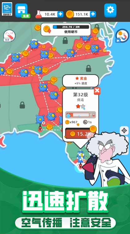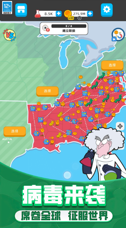 这是一场关于病毒进化的疯狂实验!在《野蛮生长》中,你将亲手打造最具破坏力的病毒,通过精密的基因工程让它们不断进化。从最初的普通病原体到最终能够毁灭世界的超级病毒,每一步进化都需要你的精心策划。游戏采用真实的流行病学模型,模拟病毒在不同环境下的传播规律,你需要根据各国的医疗水平、人口密度等因素调整传播策略,让病毒以最疯狂的方式席卷全球!