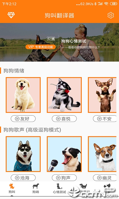 狗叫翻译器app是一款专为爱狗人士打造的实用工具,它通过四大核心功能板块——狗叫翻译、狗哨训练、心情测试和狗狗常识,帮助用户全方位理解狗狗的每一个叫声和情绪变化。无论是日常互动还是专业训练,这款app都能让你轻松掌握与狗狗沟通的技巧,让彼此之间的陪伴更加愉快和默契。