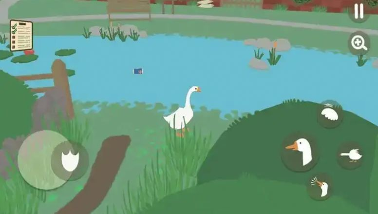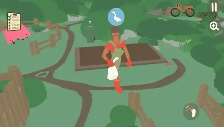 控制呆呆的鹅:需要进行操控大鹅,在农场里四处游荡,穿过村民的后院,踏进街边的商店,随意捣蛋、恶搞。鹅的动作设计十分滑稽,走路时摇摇摆摆的样子特别可爱,叫声也充满喜感。