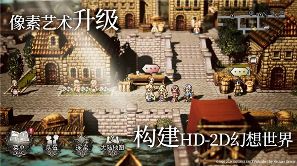 游戏采用革新性的HD-2D技术,将精致的像素艺术与现代3D光影效果完美融合,打造出层次分明的奇幻场景。从晨曦中的森林到暮色下的城堡,每个场景都如同动态的像素画卷,配合细腻的天气变化系统,为玩家带来极具沉浸感的视觉体验。