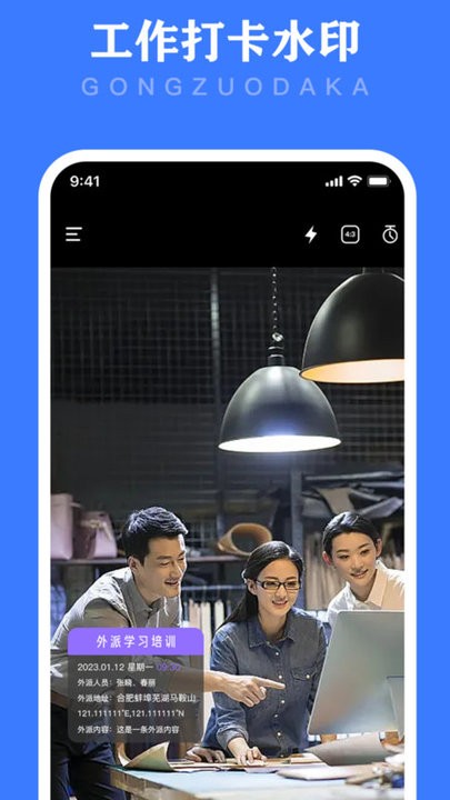 建筑行业人员可以通过这个功能记录工程进度,打开应用就能直接拍摄带有项目信息的水印照片,方便后期整理和汇报工作成果。