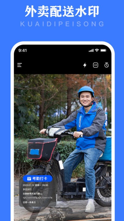 外卖骑手可以使用这个功能实时记录配送轨迹,系统会自动在照片上添加精确的时间和位置信息,为绩效考核提供可靠依据。