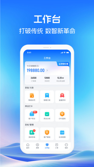 业务员需注册账号,账号注册成功后可登录软件使用。首页模块支持业务员查看销售商品、商品详细信息及实时售价,还能获取最新的促销活动信息;工作台模块不仅支持查看业务员销售业绩、商品销售数据及客户采购数据,还能进行销售趋势分析;订单模块支持查看全部订单列表及订单详情,包括订单状态跟踪和物流信息查询;个人中心模块功能更加丰富,除了查看店铺二维码、钱包、银行卡、金融资料外,还支持提现操作、商品佣金查询及个性化基础设置,满足业务员全方位的需求。