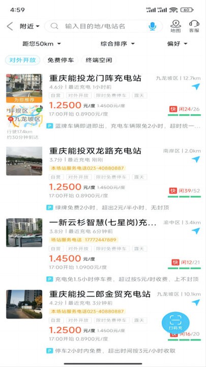 附近充电站的详细信息都能够在手机端显示出来,一键点击轻松查看,非常便捷,支持按价格、距离、评分等多种排序方式;