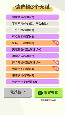 选材自主性极高,每一次抉择都将导向角色的命运与故事的新篇章,玩家可以完全按照自己的意愿塑造角色性格和人生走向;邂逅众多意料之外的命运点,随机性事件为游戏增添无穷变数,这些突发事件可能带来惊喜也可能造成挑战;全方位的角色成长轨迹,涵盖身心健康、物质财富以及社交关系等多个层面,每个属性都会相互影响,形成复杂的成长网络。