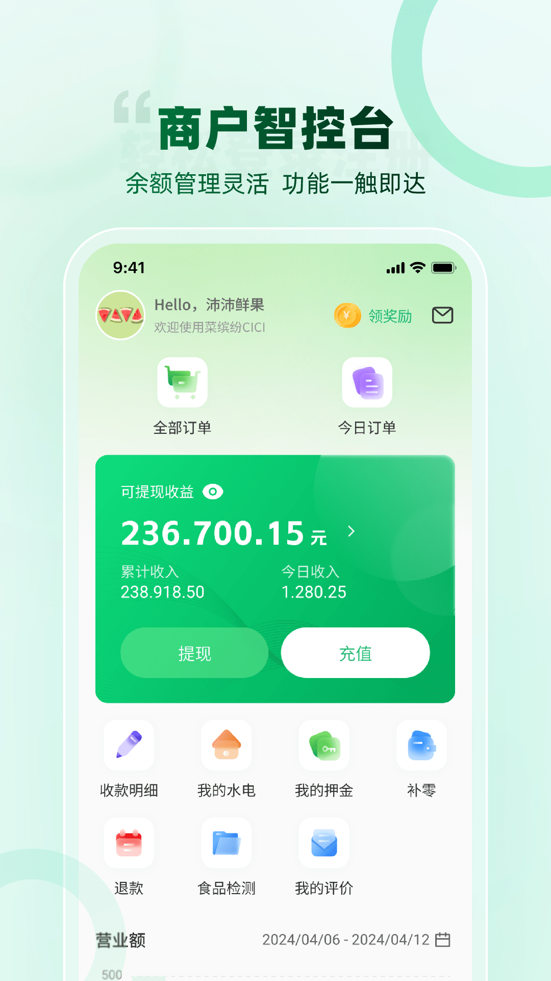 这是一款专为农贸商户打造的便捷数据查询工具,旨在帮助商户轻松管理日常经营数据。通过该工具,商户可以随时查看自己的订单记录、营业额统计以及客户评价反馈,全面掌握经营状况。此外,工具还集成了水电费缴纳功能,让商户无需切换多个平台即可完成日常缴费,大大提升了工作效率。简洁直观的界面设计和稳定可靠的系统性能,确保每位商户都能快速上手并高效使用,是农贸商户经营管理的得力助手。
