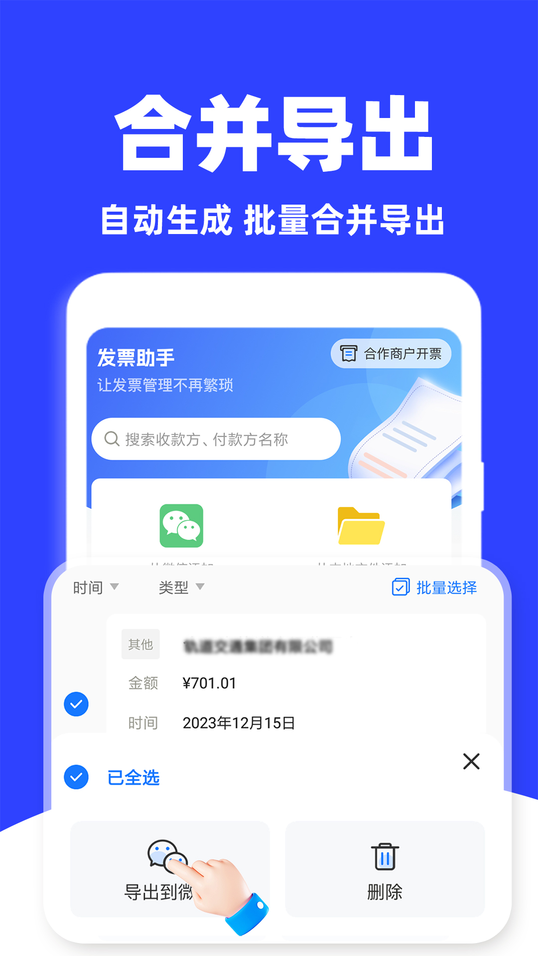轻松管理发票报销是一款专为企业和个人设计的智能财务管理工具,旨在简化发票处理和报销流程。通过智能识别技术,用户可以快速上传和分类发票,自动提取关键信息,减少手动录入的繁琐操作。无论是差旅费用、办公开支还是日常消费,都能高效管理,确保每一笔支出清晰可查。此外,系统还支持多端同步,随时随地查看和提交报销申请,大幅提升工作效率。无论是财务人员还是普通员工,都能从中受益,告别传统报销的复杂流程,享受便捷的数字化体验。