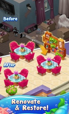 在游戏中,你需要通过合并各种精美的物品来修复破损的家具,让它们重现往日光彩。随着游戏进程,你会遇到各种有趣的合并谜题,成功解决后可以获得金币和星星奖励,这些资源能帮助你解锁更多装饰元素,丰富你的收藏。游戏还提供了多种实用道具,合理使用这些道具可以提升合并效率,让你更快地推进游戏进度,打造出独一无二的海边咖啡厅。