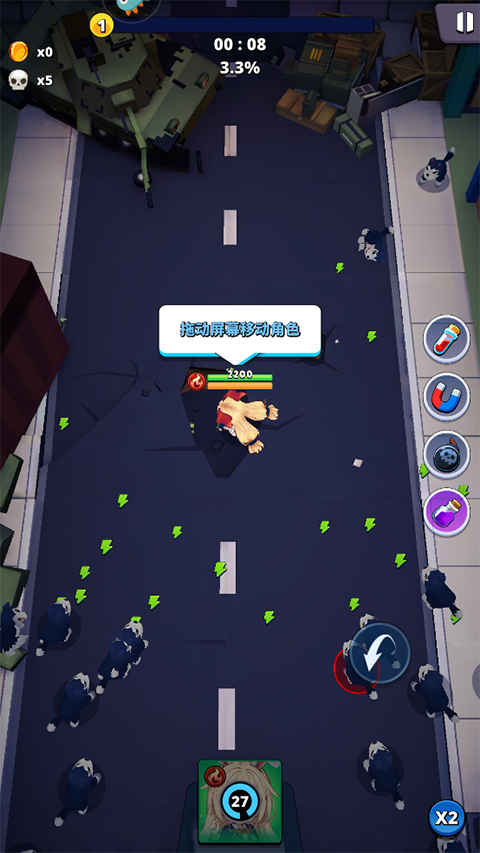 游戏操作简单,拖动角色移动,注意走位躲避怪物的攻击。合理的走位可以让你在战斗中减少伤害,提高生存能力。