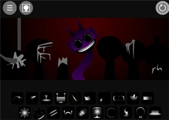 打开游戏后,玩家可以从底部丰富的图标库中选择数十种不同的道具。这些道具包含了各种音乐元素和特效,将它们拖拽到角色身上就能触发对应的音效和动作。每个角色都会根据道具类型做出独特的反应,包括夸张的表情变化和生动的肢体动作。特别值得一提的是模组的恐怖模式玩法,当你将标志性的黑帽子道具拖到角色身上时,游戏氛围会立即转变为惊悚风格。成功完成这一操作后,系统会奖励玩家解锁全新的隐藏角色,这些角色拥有更丰富的音效库和更独特的表演方式。