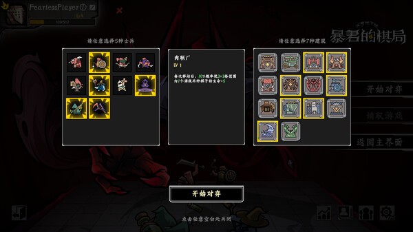 【对弈之旅】轻松愉快的剧情体验,跟随引人入胜的故事线逐步解锁新内容。相对固定的兵种/建筑/构筑搭配让玩家可以专注于策略思考,适合想要享受休闲乐趣的玩家。【狂野乱斗】紧张刺激的脑力挑战,完全自由的搭配系统让创意无限延伸。随心所欲的兵种/建筑/构筑组合,考验玩家的策略深度和应变能力。【英雄的化身】酣畅淋漓的割草乐趣,体验从棋子到英雄的成长过程。扮演反派BOSS的RPG养成玩法带来全新视角,强大的技能和广阔的行动范围让战斗充满爽快感。