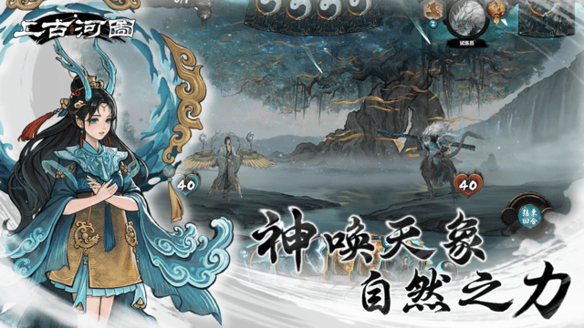 《上古河图》完美继承了《鬼谷八荒》备受赞誉的水墨艺术风格,将中国传统绘画艺术的精髓融入到游戏的方方面面。从卡牌上栩栩如生的神话人物形象,到战场上若隐若现的云雾山川,每一处细节都经过精心设计,呈现出令人惊叹的视觉效果。游戏中的水墨风格不仅体现在静态画面中,更通过动态的墨色晕染、流畅的笔触变化,为玩家营造出一个如梦似幻的修仙世界。配合悠扬的古琴声、清脆的铃铛声等极具东方韵味的音效,玩家仿佛置身于一幅会呼吸的水墨长卷之中。游戏中的每个场景、每张卡牌都蕴含着深厚的文化底蕴,让玩家在享受游戏乐趣的同时,也能感受到中国传统文化的独特魅力。