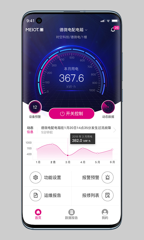 易配电Pro具备多项创新功能:首先,用户可以通过设备绑定功能实现远程开关控制,轻松管理所有联网设备;其次,系统会自动统计运行数据并生成专业报告,帮助用户全面掌握用电情况;第三,多重报警预警机制确保用户能第一时间获取异常信息;第四,详细的运维报告功能便于用户进行深度数据分析;最后,便捷的在线报修系统可快速生成工单,大幅提升故障处理效率。