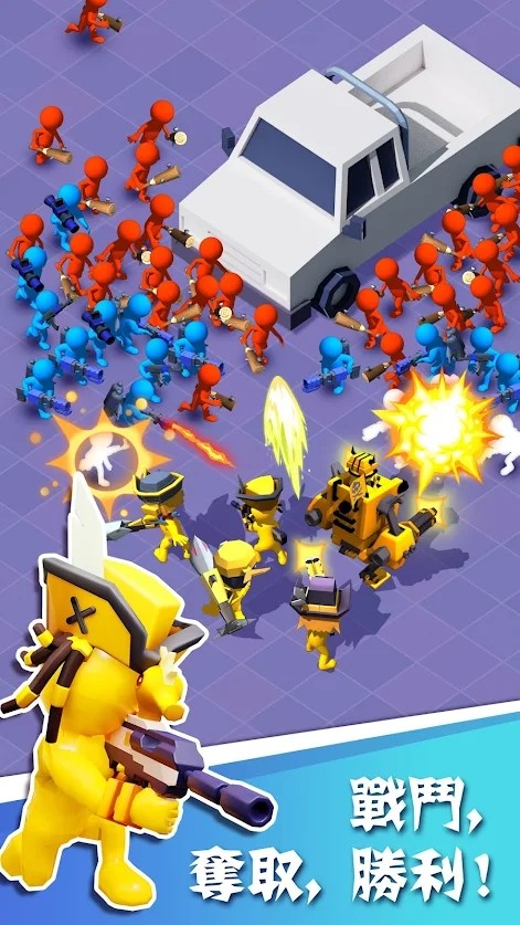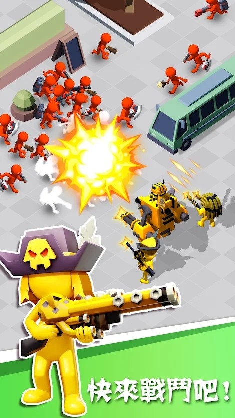 《英雄去吧疯狂小队》是一款充满魔性乐趣的大乱斗游戏,玩家将扮演火柴人指挥官,带领方块小人军团展开激烈混战。游戏采用独特的红蓝对抗机制,通过不断吞并其他队伍来壮大自己的势力。在色彩鲜明的卡通地图中,你需要灵活运用地形优势,解锁强力武器,与来自全球的玩家展开实时对战。每场战斗都充满变数,从最初的几人小队发展到百人军团,体验从弱到强的成长快感。游戏操作简单易上手,但策略深度十足,无论是休闲玩家还是竞技高手都能找到属于自己的乐趣。