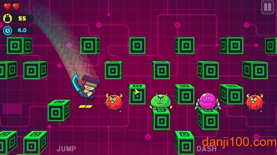游戏采用章节式关卡设计,每个章节都有独特的主题和场景风格,从奇幻森林到未来都市,为玩家带来多样化的视觉体验。虽然游戏看似简单,但想要完美通关需要玩家掌握各种技巧,包括精准的跳跃时机和高效的战斗策略。游戏特别注重音画表现,诙谐幽默的背景音乐配合清爽的打击感,让玩家一上手就欲罢不能。战斗系统融合了多种元素,玩家需要熟练掌握跑动躲避、瞬间移动和特殊攻击等技巧。生命值管理也是游戏的重要部分,玩家需要时刻注意自己的血量,避免在关键时刻功亏一篑。
