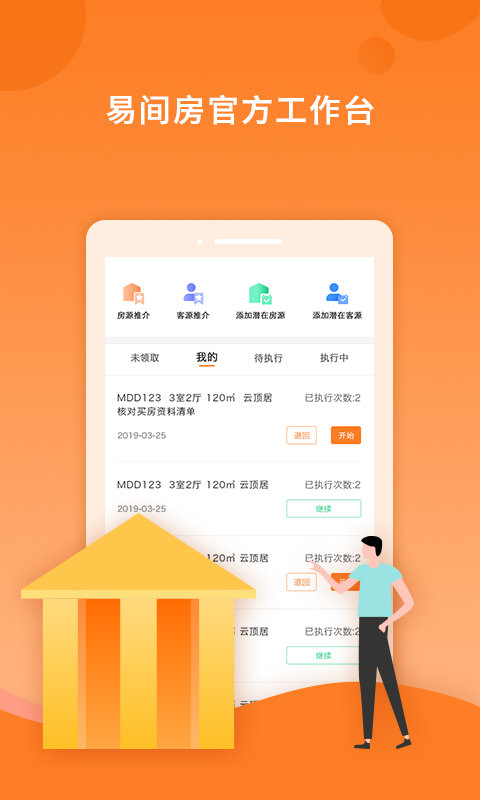 作为武汉易间房科技有限公司旗下《易间房APP》的专业配套系统,房小易致力于为经纪人打造高效的工作平台。它不仅与主平台实现数据实时同步,还针对经纪人工作场景进行了深度优化。当用户在易间房APP上达成初步交易意向后,系统会自动生成包括房源带看、合同签订、过户办理等在内的全流程任务清单。经纪人通过房小易可以便捷地领取任务、跟进进度、记录服务过程,确保每个交易环节都能得到专业人员的及时响应和处理。