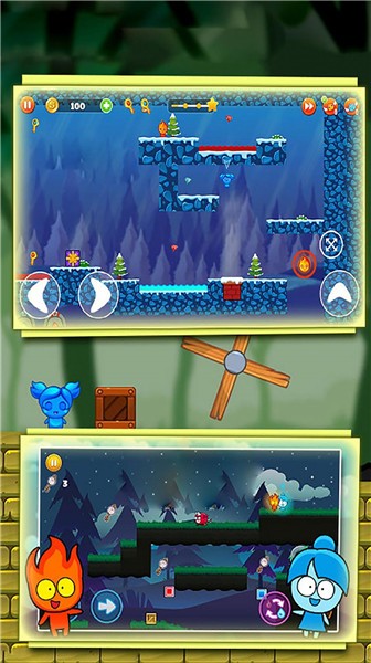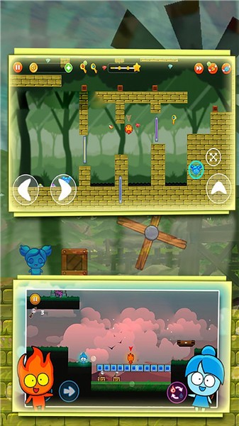 游戏中的光影效果会根据角色属性产生变化,冰人经过的地方会结霜,火人移动时会留下温暖的光晕,这些细节大大增强了游戏的视觉表现力。