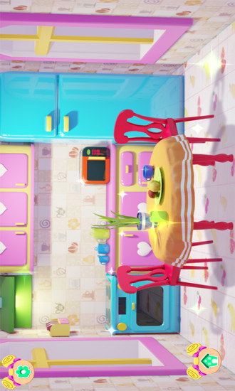 玩家可以解锁各种不同的装扮饰品,来对房间进行不同的装扮,打造你梦想中的公主屋。游戏提供上千种装饰物品,从窗帘到地毯,从灯具到墙纸,应有尽有。