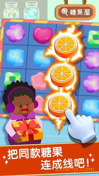 买点糖果解解腻。红的黄的绿的,好多糖果。打包糖果的秘诀是:一笔连出3颗及以上的同款糖果,怎样才能更快打包?仔细思考哦。这个游戏模式需要孩子运用逻辑思维和策略规划能力,在娱乐中培养解决问题的能力。