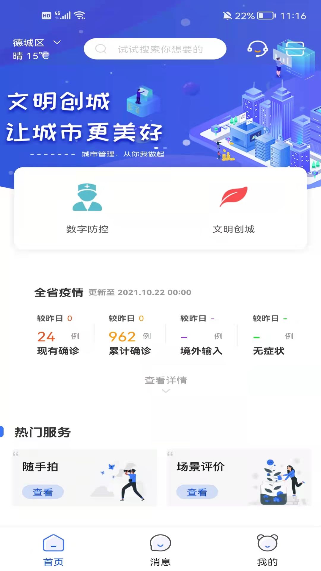 智慧德州APP是一款专为德州市民打造的智慧城市生活服务平台,致力于通过数字化手段提升居民生活品质。该应用整合了城市各类便民服务资源,让市民只需一部手机就能享受便捷的城市服务。从随手拍功能记录城市点滴,到场景评价分享生活体验,再到便捷就医解决健康需求,智慧德州APP真正实现了"让数据多跑路,让群众少跑腿"的服务理念。通过这个平台,市民可以轻松获取城市最新资讯、参与城市治理、享受优质服务,让智慧生活触手可及。
