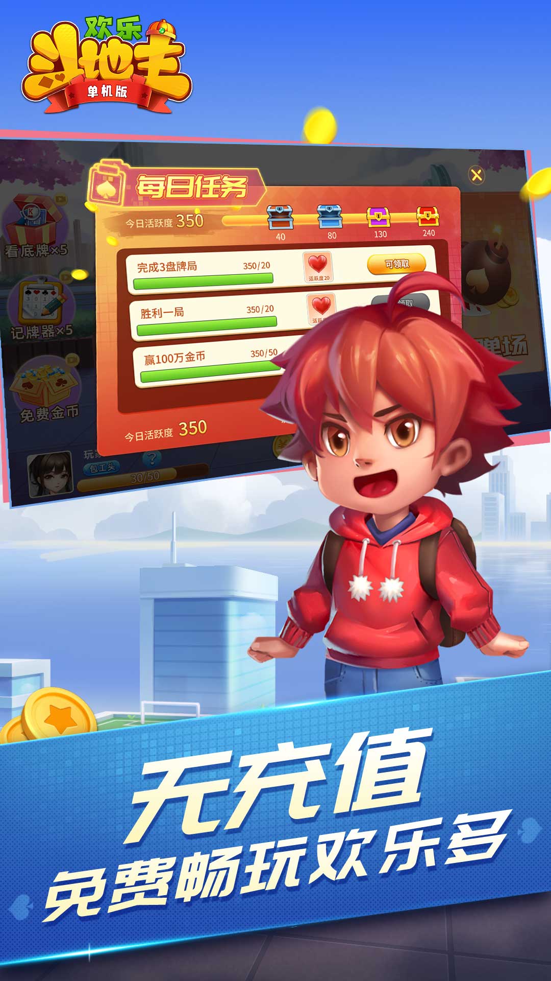 《欢乐斗地主免费》是腾讯游戏精心打造的经典扑克牌游戏,以三人斗地主为核心玩法,凭借其出色的游戏品质赢得了数亿玩家的青睐。游戏不仅完美还原了传统斗地主的精髓规则,更创新性地加入了多种特色玩法。玩家可以在经典模式中感受最纯正的斗地主乐趣,也可以在挑战模式中与各路高手切磋牌技。游戏还特别设计了丰富的个性化角色装扮系统,让每位玩家都能打造独具特色的游戏形象。定期举办的各类赛事活动更是为玩家提供了展示实力的舞台,获胜者将获得丰厚的游戏奖励。无论您是刚入门的新手还是经验丰富的老玩家,都能在《欢乐斗地主免费》中找到属于自己的游戏乐趣。
