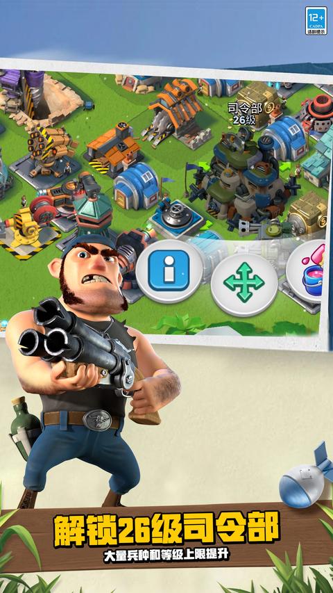 在海岛奇兵(Boombeach)这款史诗级策略游戏中,您将化身为一名英勇的指挥官,率领远征军与邪恶的黑暗卫队展开殊死搏斗。游戏背景设定在一个被黑暗势力入侵的热带群岛,您需要指挥部队抢滩登陆,解放被奴役的岛民,收复失落的领土。随着游戏的深入,您将发现隐藏在群岛深处的神秘远古力量,这些强大的能量将成为您对抗黑暗势力的关键。游戏采用实时策略玩法,玩家需要根据战场形势灵活调整战术,合理搭配兵种,才能取得最终胜利。