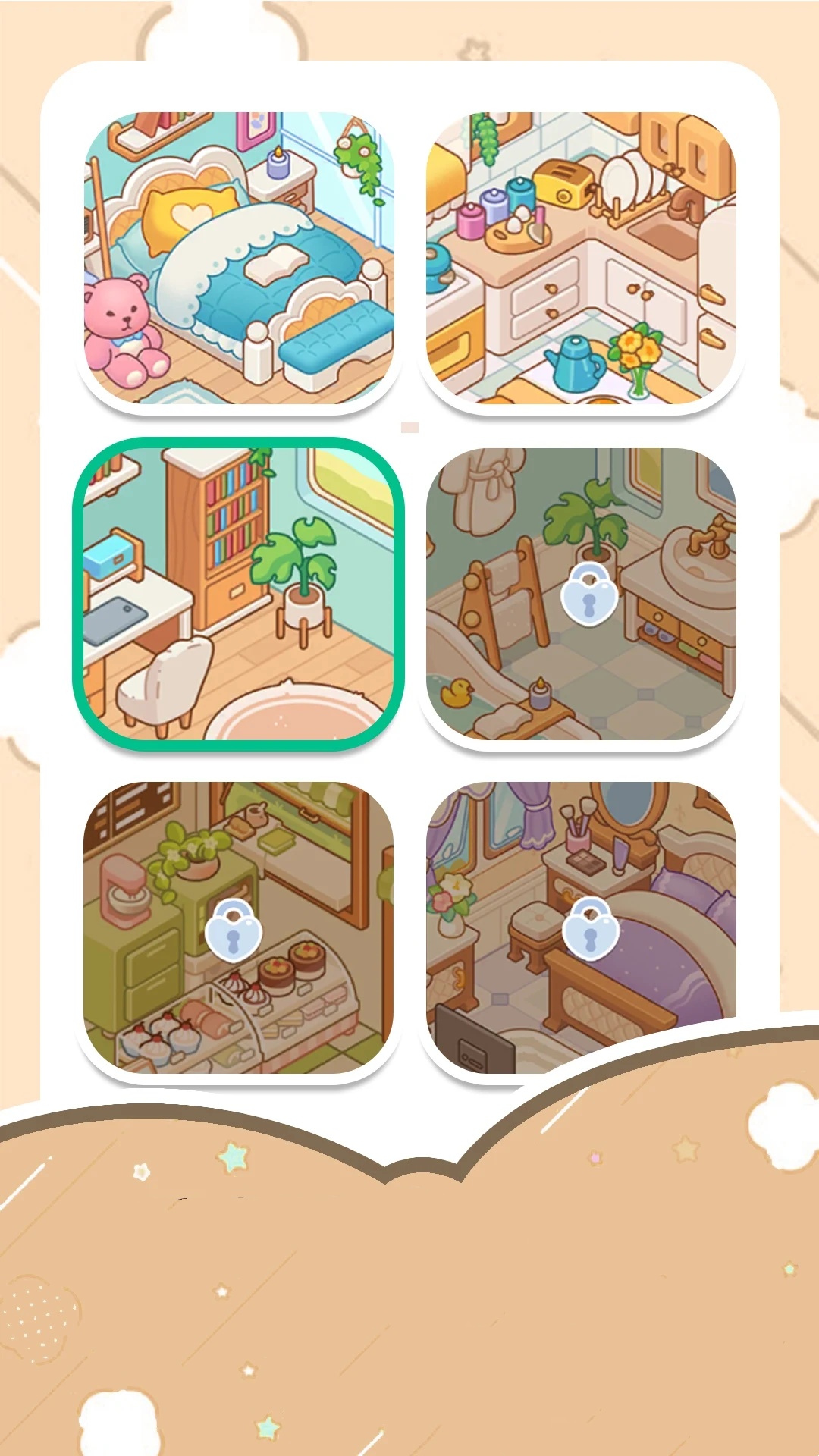 系统提供了海量的装饰物品供你选择,包括各种风格的家具、墙纸、地板和装饰品。你可以自由搭配不同元素,创造出独一无二的空间效果。每种物品都有多种颜色和款式可选,确保能满足各种审美需求。此外,定期更新的季节性装饰品让你能随时为空间增添新鲜感。
