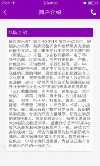 商品展示:主要经营名牌中西乐器,涉及数码钢琴、电子琴、管弦乐器、民族乐器、声像资料、乐谱教材、乐器配件等,高、中、低价款配搭合理,满足不同层次的消费需求,让每位用户都能找到适合自己的产品;