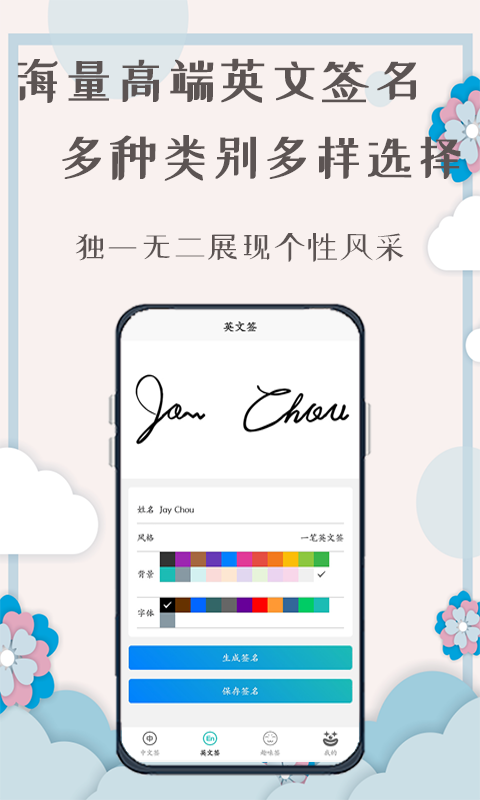 《名字创意签》是市场上最专业的艺术签名生成工具,采用先进的一键生成技术。用户可自由调整字体大小、颜色和背景样式,打造完全个性化的签名效果。软件支持中英文双语签名设计,满足不同用户群体的需求。无论是需要正式商务签名,还是想要趣味搞怪效果,都能在这里找到理想选择。定期更新的签名库确保用户始终能体验到最新潮的设计风格。
