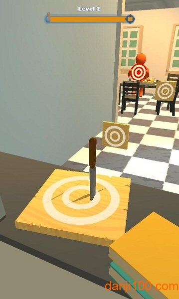 控制飞刀投掷到木板上,然后再木板之间进行转换,不断的前进直到到达终点就能获得胜利。特殊关卡会出现爆炸飞刀,可以一次性清除多个障碍物。