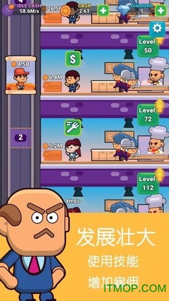 游戏提供了多种创新玩法,让玩家体验不同的经营乐趣。你可以选择当个甩手老板,雇佣专业经理人帮你打理日常事务,躺着数钱享受收益。通过不断扩展餐厅楼层,增加营业面积和服务项目,实现收入的指数级增长。精心经营你的餐厅,合理分配资金用于设备升级和员工培训,逐步扩大经营规模。完成特定经营目标可以解锁新的楼层和功能,突破发展瓶颈。随着餐厅规模扩大,你可以使用特殊技能提升运营效率,雇佣更多高级人才加入你的团队。
