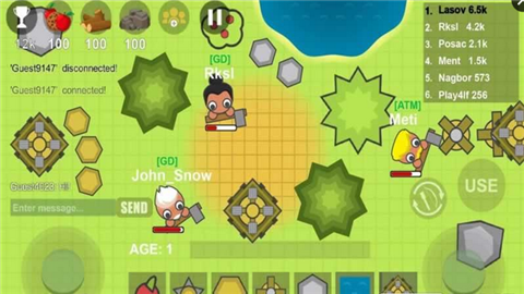 2、使用手中的斧头或者弓箭消灭所有的敌人成为最后的胜利者,展现你的战斗技巧;
